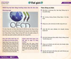 👉 Tổ chức Hợp tác và Phát triển Kinh tế (OECD) dự báo tăng trưởng kinh tế toàn cầu và của Mỹ sẽ thấp hơn kỳ vọng do thuế nhập khẩu của Tổng thống Trump. Tăng trưởng GDP toàn cầu giảm xuống 3% vào 2026; lạm phát tại Mỹ dự kiến đạt 2,8% trong 2025. Các rào cản thương mại sẽ ảnh hưởng tiêu cực tới tăng trưởng và lạm phát toàn cầu.