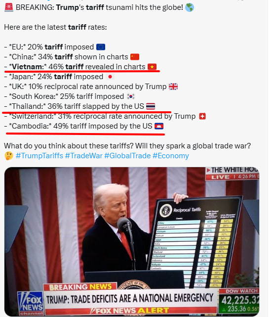 Việt Nam: chúng ta kì vọng ông chỉ áp mình 10% nhưng kết quả bất ngờ bị áp tới 46%. Đây là điều không mong đợi, nằm ngoài mọi dự đoán (Lào, Cambodia cũng dính nặng).