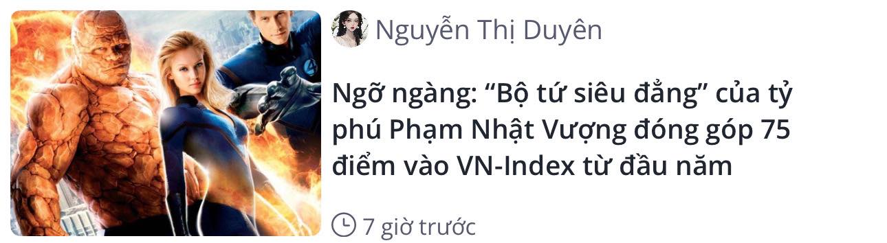 Đẳng cấp bộ tứ siêu đằng của tỷ phú nhẽ ra nên đóng góp 750 điểm cho Vnindex để nó lên 2.000 điểm chứ 75 điểm thì hơi ít.